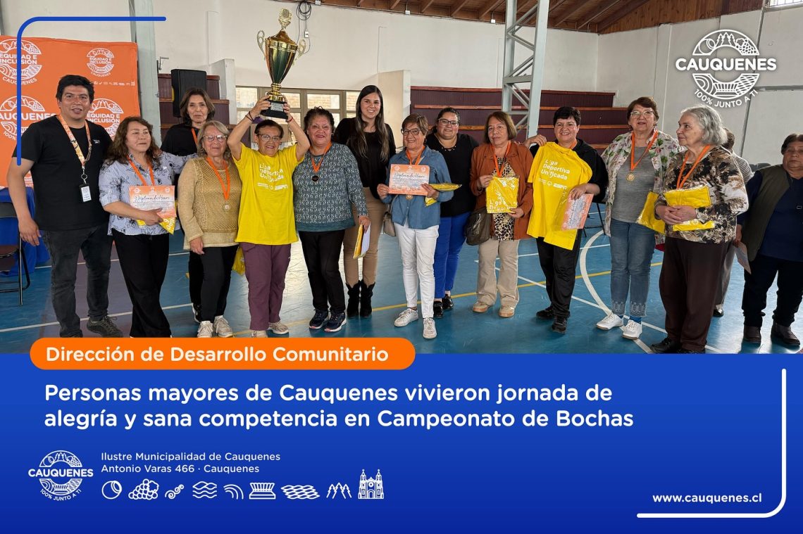 El Gimnasio Fiscal Silvio Ruiz Urrutia fue escenario del Primer Campeonato de Bochas para Personas Mayores, organizado por la Ilustre Municipalidad de Cauquenes a través de la Oficina de Inclusión, Organizaciones Comunitarias y el Departamento de Deportes, dependientes de DIDECO.